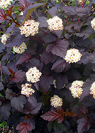 Яркий, раскидистый кустарник до 3 м высотой с темными пурпурными листьями. Особенно красиво во время цветния, когда на фоне бордовой листвы появляются цветки белые (иногда немного розовые), с красными тычинками. Срок цветения в июне - июле. Требует регулярной стрижки. Великолепен в свободнорастущих изгородях.