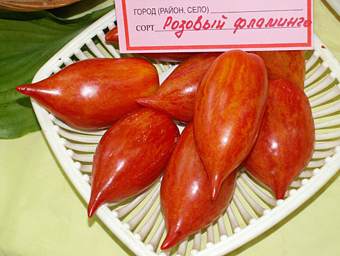 Бесподобный сорт Розовый дельфин. Куст невысокий, до 70 см. Плоды продолговатые, необыкновенно вкусные. Особенность этого сорта - крупноплодность в сочетании с низким ростом.