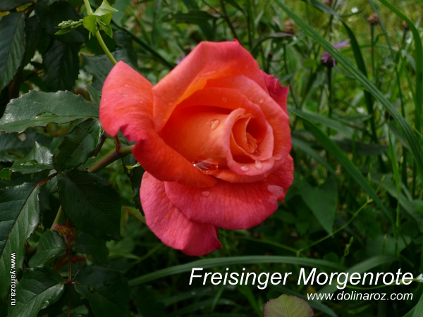 France Libre (Delbard, 1990) – ярко-оранжевый «бокал». Роза великолепна! Цветки не выгорают и не боятся дождя. Цветение обильное и продолжительное. Куст прямостоячий, густо облиственный, устойчивый к заболеваниям. Воранжевыхтонах: Folklore (Kordes), Fairest Cape (Kordes, 2005), Freisinger Morgenrote (Kordes, 1988), Tea Time (Tantau, 1994), Michel Serrault (Meilland, 2006).