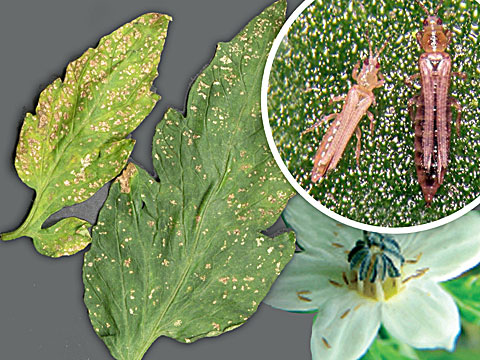 Западный цветочный трипс – очень мелкое (до 2 мм) насекомое, ведет скрытный образ жизни, поселяясь в цветочных почках, бутонах, цветках, под различными чешуйками на растениях. Таким образом, большая часть популяции неуязвима для обычных химических обработок. Самки откладывают яйца внутрь растительной ткани, что затрудняет их обнаружение и позволяет им долго сохранять жизнеспособность. Личинки и взрослые особи высасывают клеточный сок из растительной ткани. Первоначально это вызывает появление желтых некротических пятен, своеобразной штриховатости, постепенно эти штрихи и пятна сливаются. Поврежденная растительная ткань отмирает, в результате образуются отверстия, листья увядают и опадают. При массовом заселении на растениях видны «серебристые» участки, часто отмечается искривление стеблей. Повреждение цветочных почек вызывает деформацию цветков. При этом резко снижается получаемый урожай, а порой посадки растений полностью погибают.
